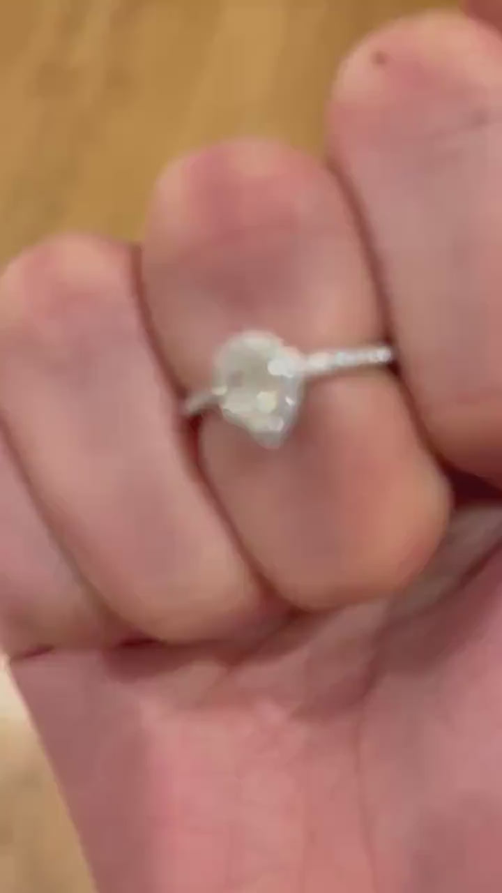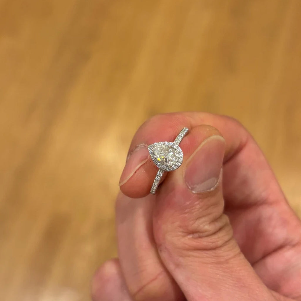 1.5CT Pear Cut Moissanite Engagement Ring, Sterling Silver Wedding Ring, Dainty Minimalist Halo Diamond Ring, Anniversary Ring, Gift For Her