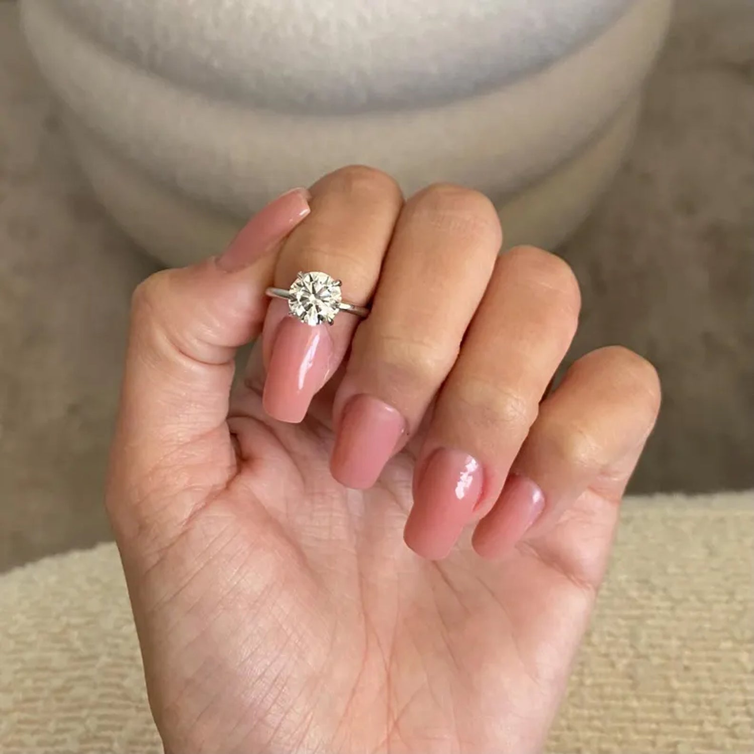 2.00 Carat Moissanite Round Cut Diamond Ring / Minimalist Solitaire 4 Prongs 925 Sterling Silver Thin Ring / Round Cut Diamond Engagement Ring