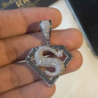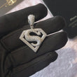 Sterling Silver 925 Fully Iced Out Superman Logo Pendant Bling Pendant Hip Hop Pendant