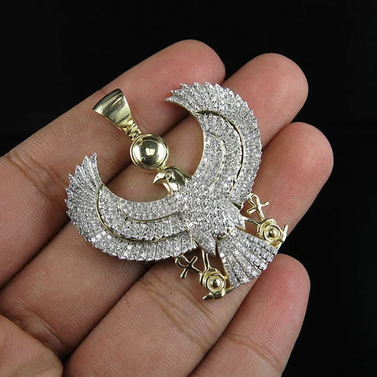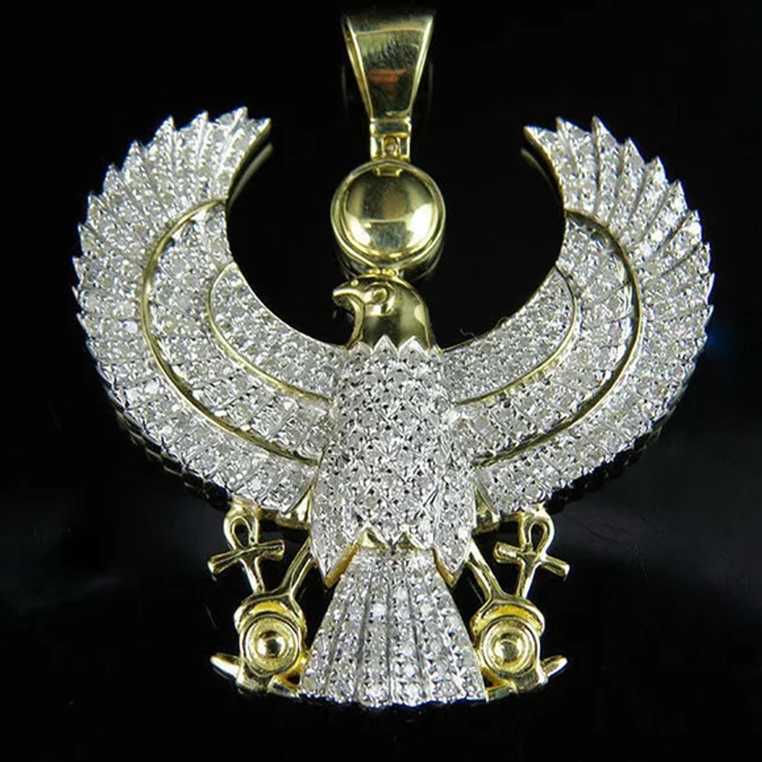 2Ct Moissanite Sterling Silver 925 Round Cut Diamond Yellow Gold Plated Finish Egyptian God Eagle Pendant Charm