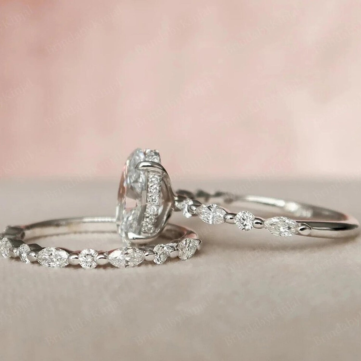 3 Ct Oval Cut Moissanite Wedding Ring Set, Oval Moissanite Engagement Ring Set, Bridal Set,Half Eternity Matching Bands,Anniversary Gift