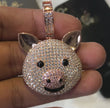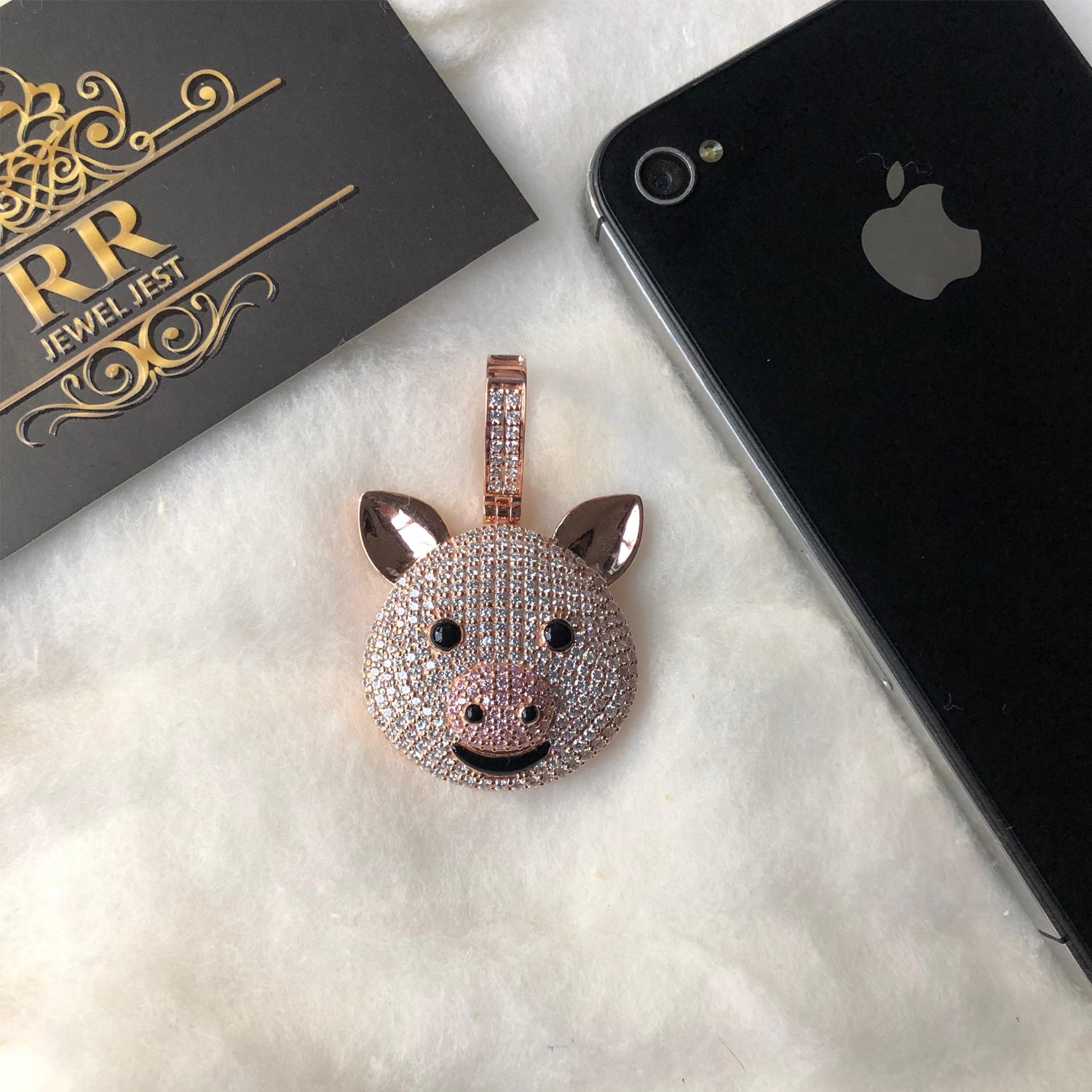 Sterling Silver 925 Fully Iced Out Round CZ Diamond Pig Emoji For Men Women's Charm Pendant 14K Rose Gold Over