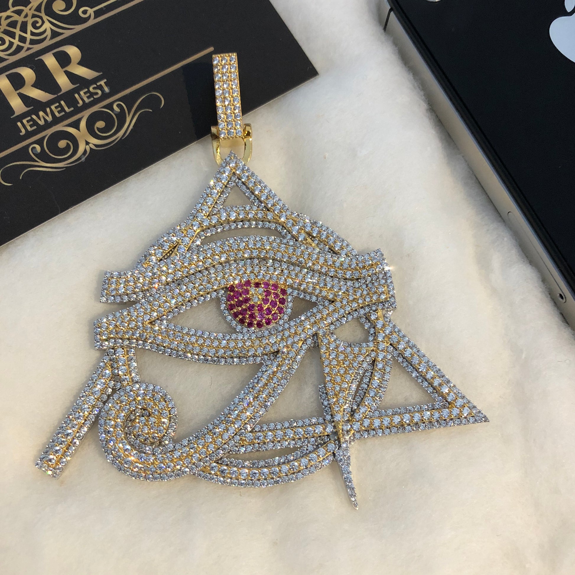 Sterling Silver 925 Round Diamond ‘Eye of Horus’ Fully Iced Out Pendant Rose Gold Plated