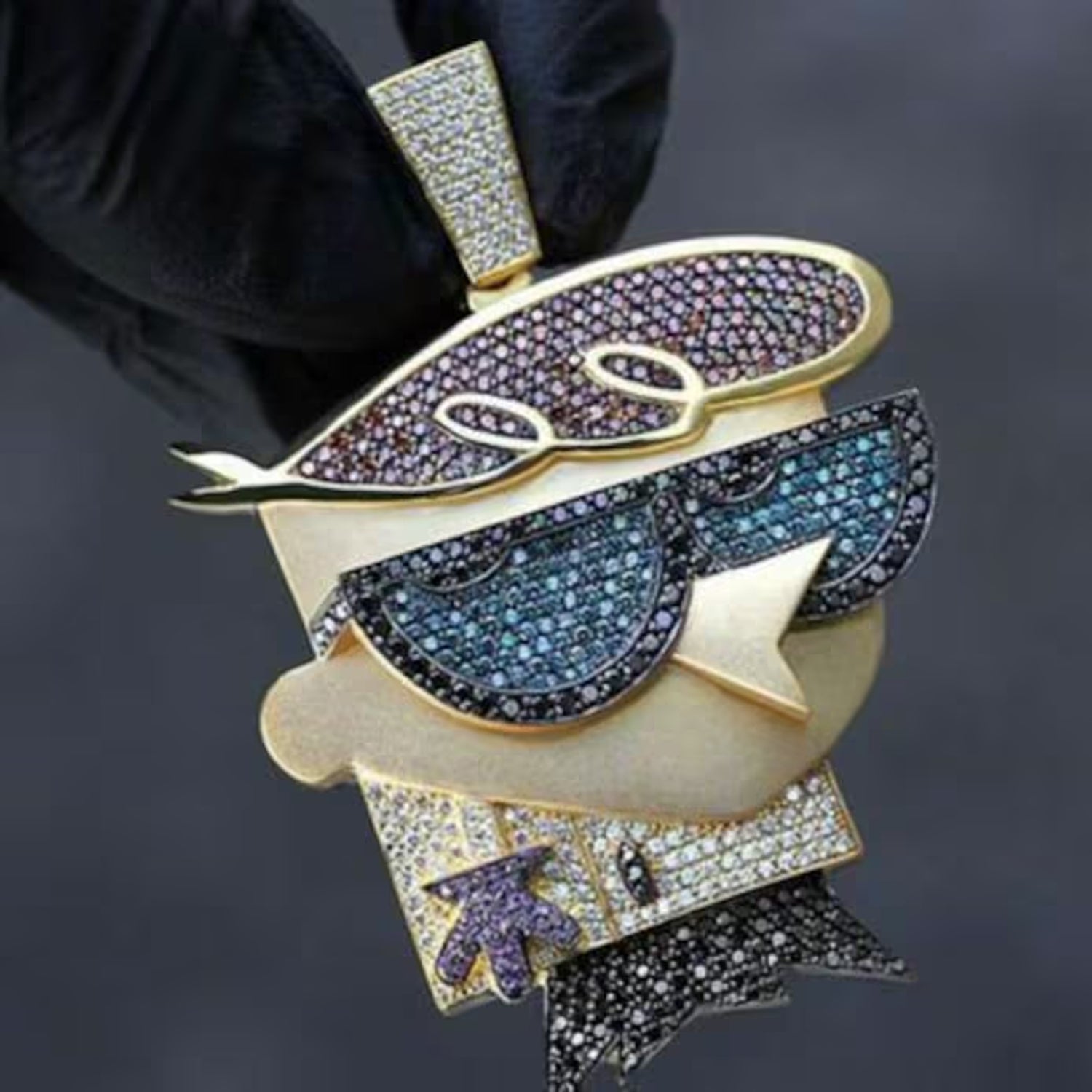 35 MM Long 25 MM Wide Unisex Silver 925 CZ Diamond Iced Dexter Pendant Charm